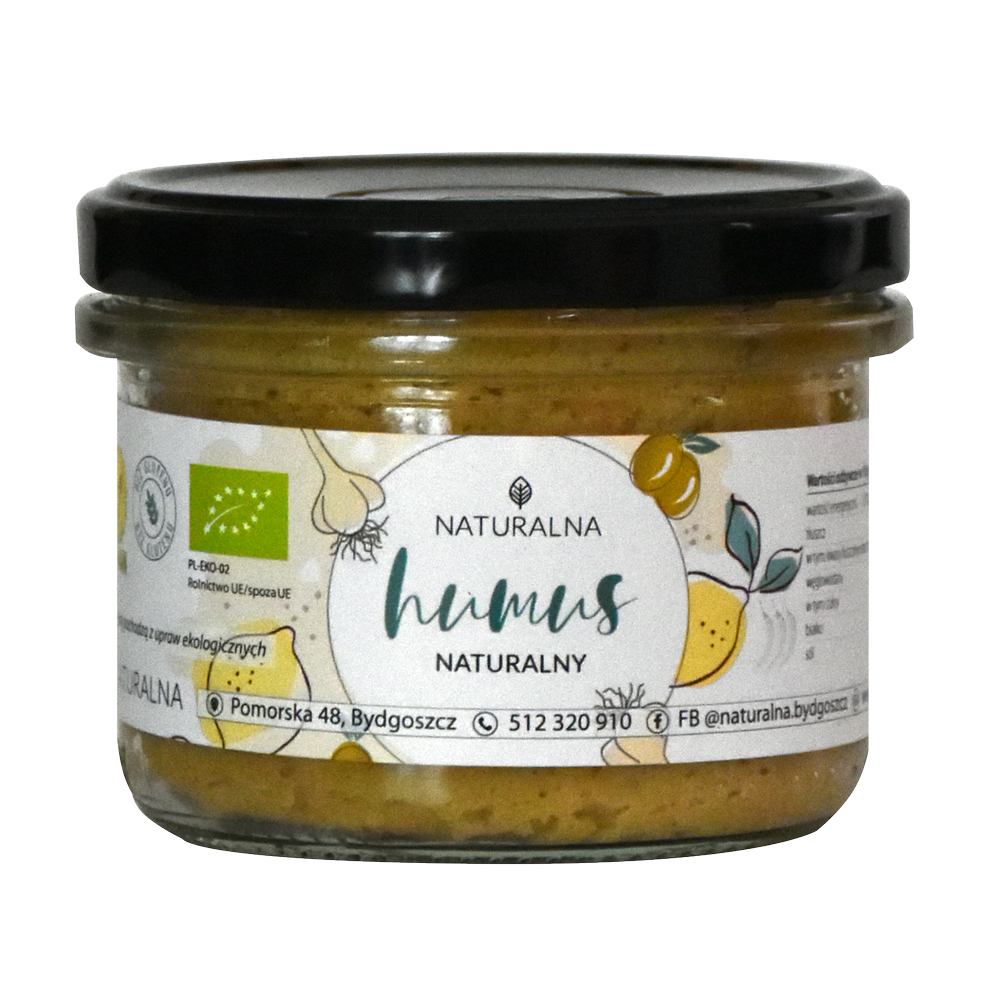 Skład: ciecierzyca, woda, oliwa z oliwek, sezam, cytryna, czosnek, przyprawy, sól himalajska