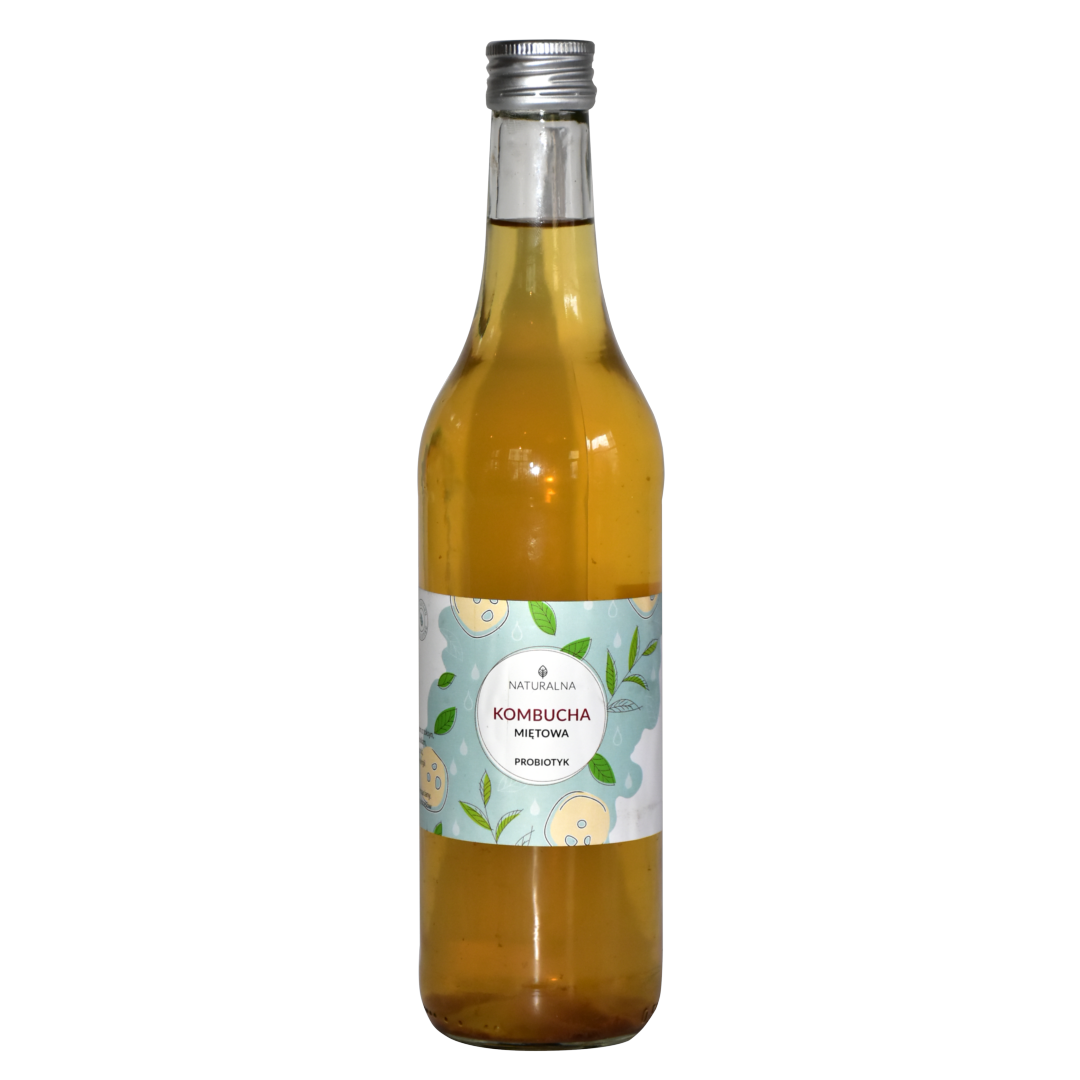 NATURALNA posiada w swojej ofercie również kombuchę na bazie mięty pieprzowej. Ten wyśmienity orzeźwiający napój można z powodzeniem na stałe wpisać do swojego menu, tym bardziej że posiada on także wyjątkowe prozdrowotne właściwości. Działa antyoksydacyjne, zwiększa odporność, wspomaga układ pokarmowy, polecana również przy bólu brzucha czy wzdęciach, a dzięki dodaniu do składu mięty pieprzowej pomaga przy łagodzeniu objawów migreny. Do przygotowania tej wersji kombuchy użyliśmy m.in.: herbaty Peppermint, cukru trzcinowego i żywych kultur bakterii. Samo zdrowie! (Napój należy spożywać w ilości od 50ml do 120 ml na dzień).