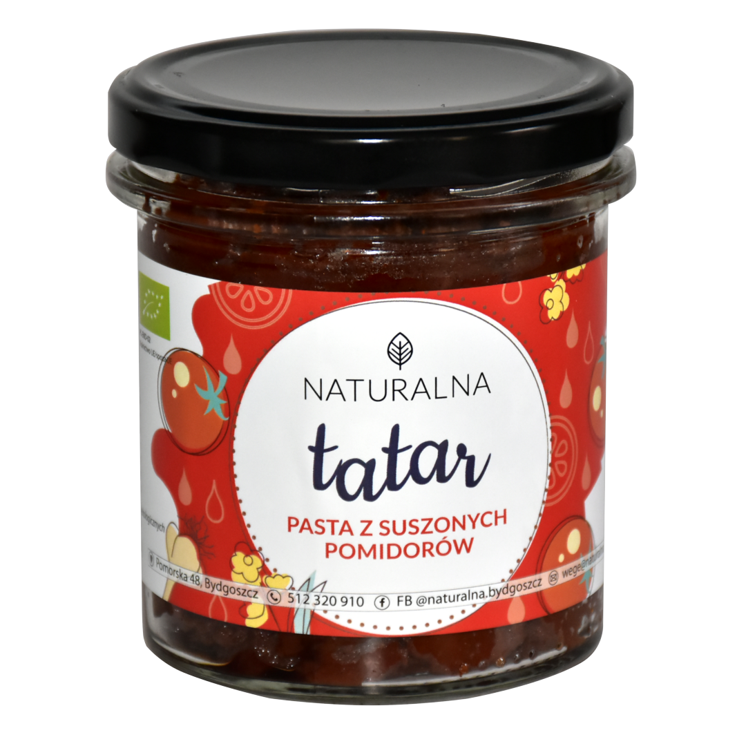 Skład: pomidory suszone, olej rzepakowy, woda, kasza jaglana, sos sojowy (woda, soja, sól), przyprawy
